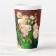 Latte Mug featuring Vincent van Gogh’s oil painting Bowl with Peonies and Roses (1886). Beautiful pink and white peonies and roses sit in a green vase against a red background. A wonderful gift for fans of Post-Impressionism and Dutch art.