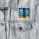 Button featuring Vincent van Gogh’s oil painting Road with Cypress and Star (1890), also known as Country Road in Provence by Night. People walk along a road passing a beautiful cypress tree underneath a blue night sky with yellow moon and stars. A fantastic gift for fans of Post-Impressionism and Dutch art.