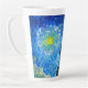 Latte Mug featuring Vincent van Gogh’s oil painting Road with Cypress and Star (1890), also known as Country Road in Provence by Night. People walk along a road passing a beautiful cypress tree underneath a blue night sky with yellow moon and stars. A fantastic gift for fans of Post-Impressionism and Dutch art.