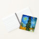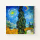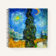 Notebook featuring Vincent van Gogh’s oil painting Road with Cypress and Star (1890), also known as Country Road in Provence by Night. People walk along a road passing a beautiful cypress tree underneath a blue night sky with yellow moon and stars. A fantastic gift for fans of Post-Impressionism and Dutch art.
