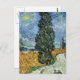 "Road With Cypresses" by Vincent Van Gogh is a wonderful impressionistic painting by one of the master artists of all time. The road is swirling with color and emotion, as the green cypress trees wave to the swirling blue Sky with what looks like a star and a crescent moon. Painted in 1890 in Southern France in Saint-rémy-blanzy.
