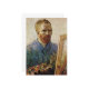 Self-Portrait in Front of the Easel by Vincent van Gogh is a vintage fine art post impressionism daily life portrait painting featuring the artist..