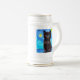 Beer Stein featuring a black cat in Van Gogh’s painting Starry Night! This blue eyed kitten gazes adoringly from a background of blue swirls and a bright yellow moon. A fantastic gift for cat lovers and Dutch art collectors!