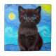 Van Gogh Starry Night Black Cat Ceramic Tile