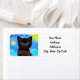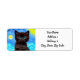 Return Address Labels featuring a black cat in Van Gogh’s painting Starry Night! This blue eyed kitten gazes adoringly from a background of blue swirls and a bright yellow moon. A fantastic gift for cat lovers and Dutch art collectors!