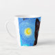 Latte Mug featuring a black cat in Van Gogh’s painting Starry Night! This blue eyed kitten gazes adoringly from a background of blue swirls and a bright yellow moon. A fantastic gift for cat lovers and Dutch art collectors!
