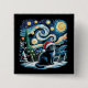 Van Gogh Starry Night Festive Christmas Black Cat Button
