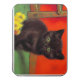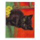 Puzzle featuring a black cat in Van Gogh style! This beautiful kitty adorably sits next to sunflowers upon a green floor against a red wall. A cute gift for cat lovers and Dutch art collectors!