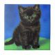 Tile featuring a Van Gogh style black kitten. This fluffy kitty poses adorably for the viewer! A marvelous gift for cat lovers and Dutch art collectors!