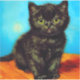 Sticker featuring a Van Gogh style pouting kitten. A fluffy black kitty looks at the viewer with an extended lower lip—she just wants some attention! A gorgeous gift for cat lovers and Dutch art collectors!