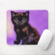 Mouse Pad featuring a Van Gogh style cat with purple background. This black kitty looks at the viewer adorably! A great gift for cat lovers and Dutch art collectors!