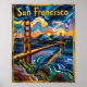 This vintage, Van Gogh-style poster transforms San Francisco’s iconic Golden Gate Bridge into swirling, impasto brushstrokes of fiery sunset and cobalt skies, evoking the spirit of Starry Night. The retro bold red towers rise through a textured, post-impressionist scene, while the bay shimmers in deep violet, teal, and gold, framed by layered hills and twinkling city lights. Perfect for fans of classic, elegant, and impressionist aesthetics, this art celebrates California charm and American vacation and travel memories. Ideal as a retro vintage travel keepsake, fine art gift, or stylish city-themed greeting—bringing together U.S. landmarks and timeless impressionism.