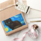 Stickers featuring a Van Gogh cat in the style of Starry Night! A fluffy black kitten perches on a table against a blue night sky and yellow moon. A purr-fect gift for cat lovers and Dutch art collectors!