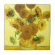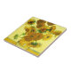 Van Gogh Sunflowers tile. Oil painting on canvas from 1888. Vase with Fifteen Sunflowers is one of Vincent Van Gogh’s most beloved still life works. The brilliant use of yellows quietly evokes the end of summer. A great gift for fans of sunflowers, Van Gogh, impressionism, and still life art.