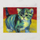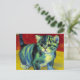 Postcard featuring a tabby cat in the style of Van Gogh! This sweet kitty adorably poses on a wooden floor against red walls and a window. An awesome gift for cat lovers and Dutch art collectors!