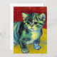 Card featuring a tabby cat in the style of Van Gogh! This sweet kitty adorably poses on a wooden floor against red walls and a window. An awesome gift for cat lovers and Dutch art collectors!