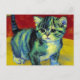Postcard featuring a tabby cat in the style of Van Gogh! This sweet kitty adorably poses on a wooden floor against red walls and a window. An awesome gift for cat lovers and Dutch art collectors!