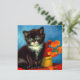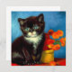 Card featuring a beautiful Van Gogh tuxedo cat! This little kitty poses next to a basket of orange flowers upon a red table. A great gift for cat lovers and Dutch art collectors!