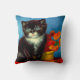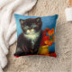 Pillow featuring a beautiful Van Gogh tuxedo cat! This little kitty poses next to a basket of orange flowers upon a red table. A great gift for cat lovers and Dutch art collectors!