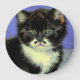 Clock featuring a tuxedo kitten in the style of Vincent van Gogh! This pretty kitty poses with purple flowers. A superb gift for cat lovers and Dutch art collectors!