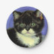Paper Plates featuring a tuxedo kitten in the style of Vincent van Gogh! This pretty kitty poses with purple flowers. A superb gift for cat lovers and Dutch art collectors!