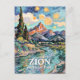 This artwork captures the wonder of Zion Canyon, the serenity of golden hour along the riverbank, and the adventurous spirit of hikers exploring canyon viewpoints and scenic trails. Vibrant colors, textured strokes, and luminous sky swirls create a peaceful wilderness moment that appeals to nature lovers, travelers, and fans of US National Parks. Add your own custom editable text—names, dates, or trip memories—to create a personalized travel keepsake inspired by the timeless beauty of Southwest Utah’s most beloved vista.