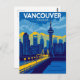 Celebrate the stunning West Coast with this vibrant, vintage-style postcard! It features a dynamic illustration of the Vancouver skyline, dominated by the Harbour Centre Tower and set against the dramatic backdrop of the Coastal Mountains and a yellow-lit bridge. The rich blue and yellow color palette perfectly captures the modern energy and natural beauty of Vancouver, British Columbia, Canada. A stylish piece for travelers, B.C. residents, or fans of bold, graphic cityscapes.