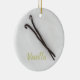 Lightweight, smooth, pure white ornament with nice sheen. Perfect size to be seen from across the room ... and to attract closer inspection! Price was great for ordering enough for the whole family! Clear, bold black design just as requested. Matches the order exactly. Just so nice!