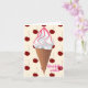 A fun, cute and girly Birthday Card that an ice cream lover will enjoy. On the cover, a vanilla ice cream cone is set against a background pattern of cherries, with the words "Birthday wishes" in pink. The inside text is in a dark brown colour.
