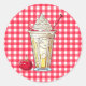 Vanilla Milkshake with Cherries Red Checkered Classic Round Sticker