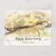 Artistic color combination in gentle beige, yellow, green, brown and vanilla colors and a calligraphy script Happy Anniversary.