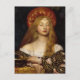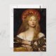 Vintage 1907 medieval inspired maiden with a haughty expression and her bejeweled hands folded in her lap. Painting by English portrait artist Frank Cowper.