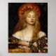 Vintage 1907 medieval inspired maiden with a haughty expression and her bejeweled hands folded in her lap. Painting by English portrait artist Frank Cowper.