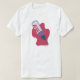 The shirt is good quality and fits just fine, but the colors of the printing are not as bright as in the sample photo. Not the best. The colors are a lot brighter in the sample photo; when I received the shirt they appeared faded. The red looks a little more pink and the blue is a lot lighter. N.B. I did not wash the shirt yet.