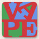 The word VAPE in red letters on a green and red background. The letters VA are on top (the A is canted sideways) and PE are at the bottom. An homage to pop art, dedicated to all vapers.