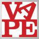 The word VAPE in red letters. The letters VA are on top (the A is canted sideways) and PE are at the bottom. An homage to pop art, dedicated to all vapers.