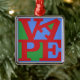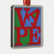 The word VAPE in red letters on a green and red background. The letters VA are on top (the A is canted sideways) and PE are at the bottom. An homage to pop art, dedicated to all vapers.