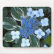 Photo of a beautiful variegated blue hydrangea bloom. Leaves are three different shades: white; gray/green; and green. Petals are formed in two ways: larger petals are white with blue centers and smaller, blue beads center the larger, white petals.