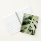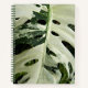 Spiral bound notebook for sketching or writing that features both front and back covers with the floral photo image of a large, green and white, variegated Monstera plant leaf, commonly called the Swiss Cheese Plant. A beautiful, floral design! Select your notebook style options.