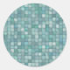 Graphic design of variegated teal colored decorative tiles for a textured duo-tone pattern of repeated square shapes.