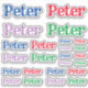 Colourful stickers in a number of different sizes with the Christian name Peter.