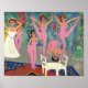 Variétéparade (Variety Show) (1908) is an original artwork by German expressionist painter Ernst Ludwig Kirchner (1880-1938). The painting captures the lively, energetic atmosphere of a risqué dance performance, with several ladies dressed in bold pink and white outfits. Kirchner's use of vivid, exaggerated colors and sharp, angular lines emphasizes the dynamic movement of the performers, creating a sense of urgency and excitement. The piece reflects Kirchner's fascination with modern urban life and entertainment, capturing a moment of vibrant, if provocative, spectacle.