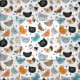 Cartoon like graphic, faces of various types of cats, seamless repeat pattern
