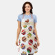 Unique, artsy, fun apron, featuring various, colorful cupcakes illustration over white and blush pink stripes, and custom name, designed by PiccoGrande.