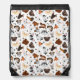 Cartoon like graphic, faces of various dog breeds, seamless repeat pattern
