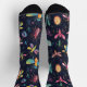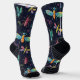 Various Flying Bugs Chalk Drawing Pattern Black Socks