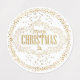 with white background and a golden grain circle with happy christmas and happy new year in various styles.
