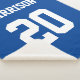Varsity sports style. Customize it with your name, age, year, number or sports team name. Fully customizable text on blue background. You can edit and change the colors and also delete it and just leave the solid color. Great for the home or dorm. Great for kids, teens and adults. Check the rest of the collection for coordinating and matching items and additional color options.