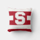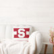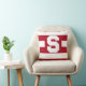 Sporty varsity stripe red custom initial throw pillow. Great to show team spirit!