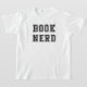 Show your bookish self with this T-shirt featuring the words "Book Nerd" in a varsity style in black.